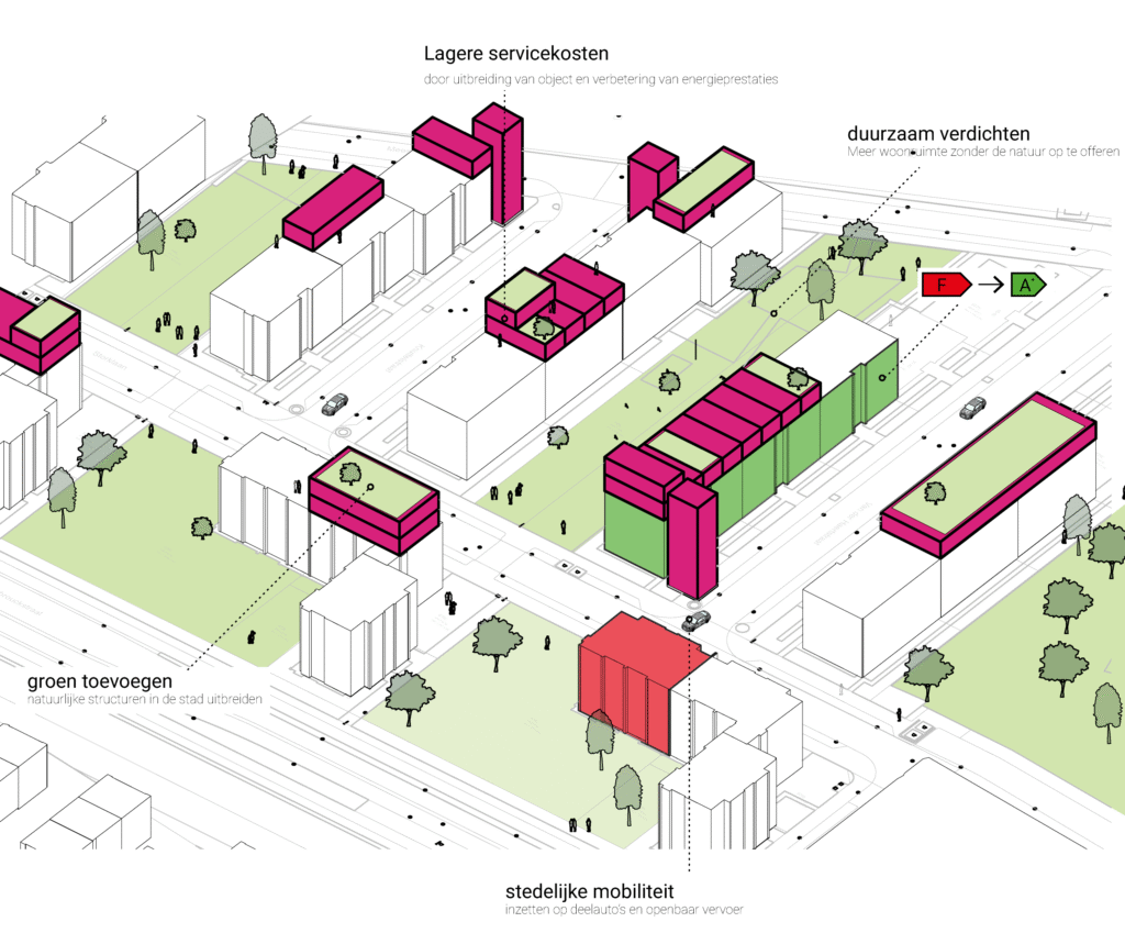 “Optoppen” het toevoegen van een woonlaag bovenop een bestaand gebouw.