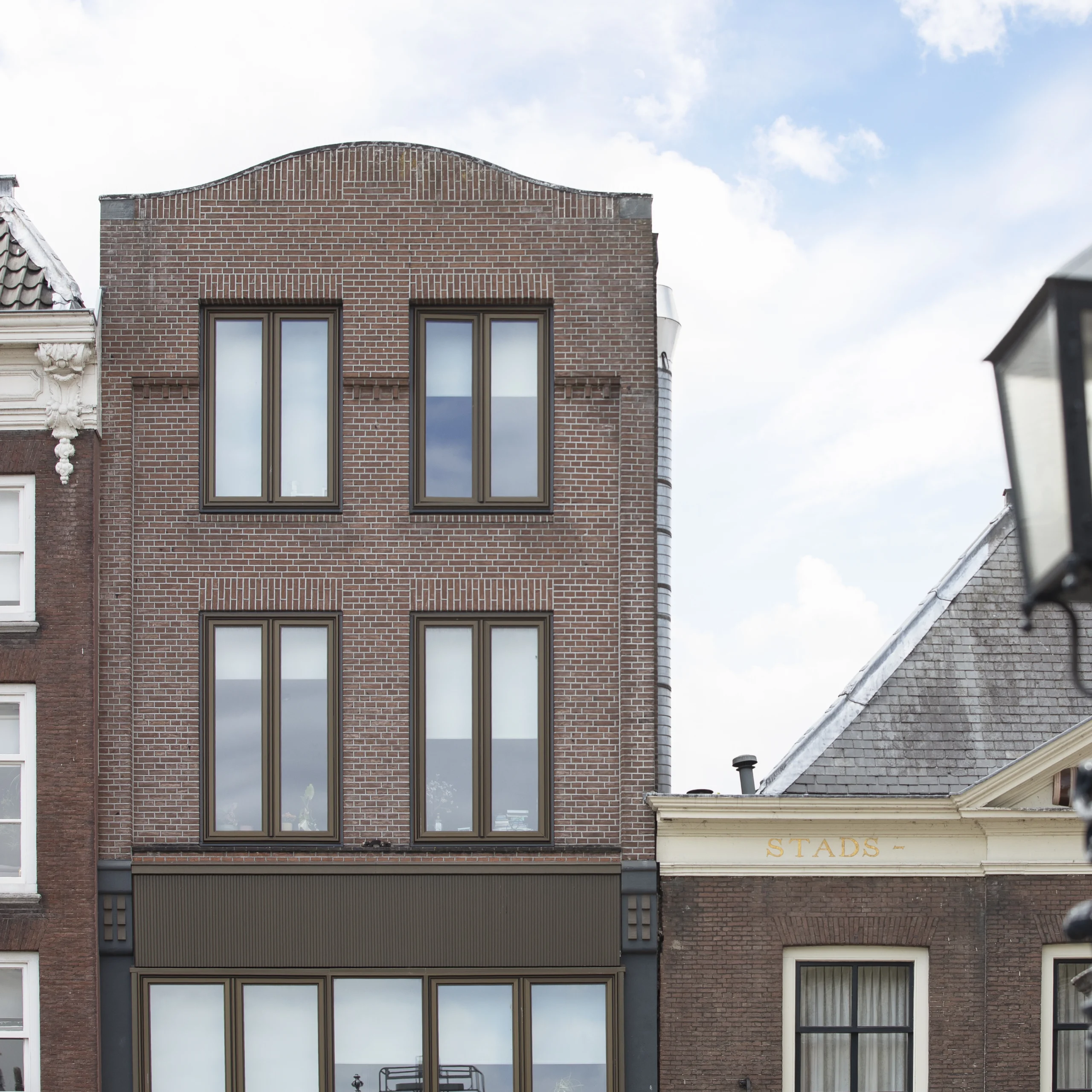 Deze geschiedenis vormde de basis voor het nieuwe ontwerp. Een gevel die in materiaalgebruik, scherpte en onderhoud helemaal van nu is, maar in ritme en indeling nadrukkelijk verwijst naar vroeger. Zelfs het grotere glasoppervlak verwijst bewust naar de ingreep die destijds zoveel discussie opriep. Daarmee vertelt het gebouw opnieuw een verhaal: over hoe gebouwen zich ontwikkelen, meegaan met hun tijd en tegelijkertijd altijd gebruiksvoorwerpen blijven. Hopelijk komt Markt 13 straks ter sprake tijdens een architectuurronde door Delft – als voorbeeld van hoe historie, kritiek en eigentijdse architectuur elkaar kunnen versterken.
